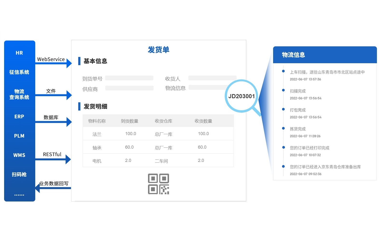 集成ERP、PLM、MES、HR系統(tǒng)、BI報(bào)表、WMS、物流系統(tǒng)等,實(shí)現(xiàn)業(yè)務(wù)流程貫通。