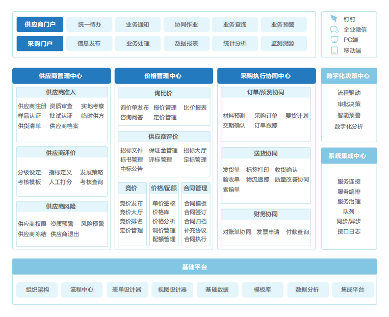 正遠SRM數(shù)字化采購解決方案,面向傳統(tǒng)采購模式中供應(yīng)商管理松散,采購流程長、周期長,信息不透明,成本和質(zhì)量不可控的采購難題,為企業(yè)打造一個內(nèi)外統(tǒng)一的采供平臺,實現(xiàn)采購業(yè)務(wù)的量化和可視化管理,助力企業(yè)綜合提效降本。