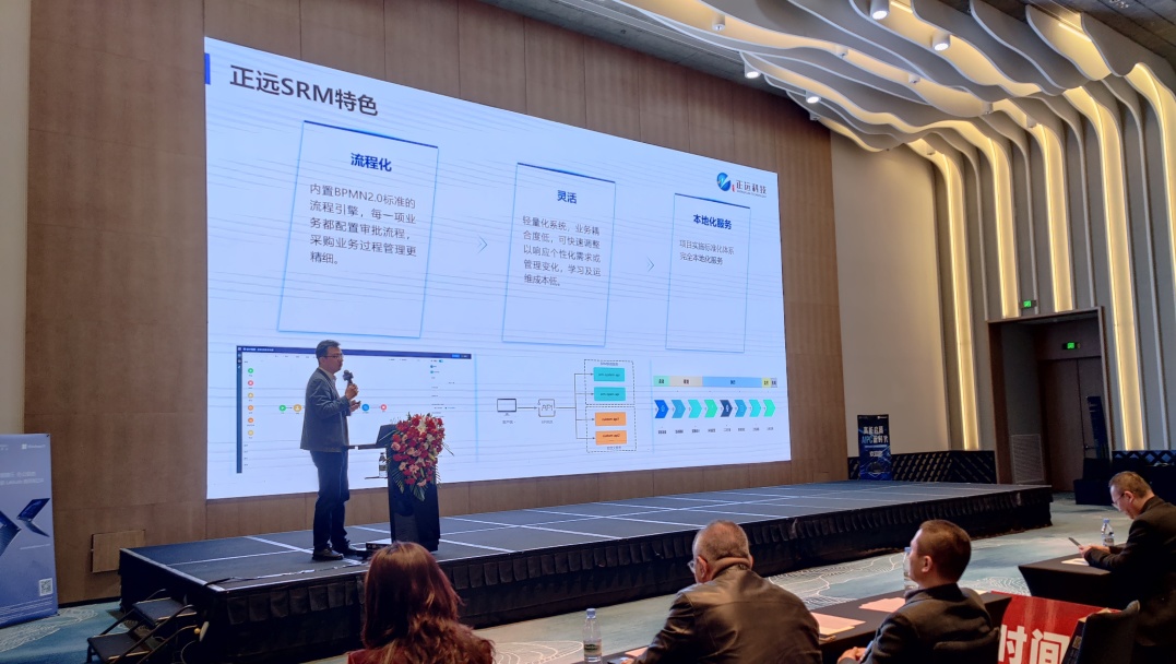 會(huì)上,正遠(yuǎn)科技解決方案事業(yè)部總監(jiān)呂新生以《正遠(yuǎn)SRM助力企業(yè)降本增效》為題,進(jìn)行了主題演講。