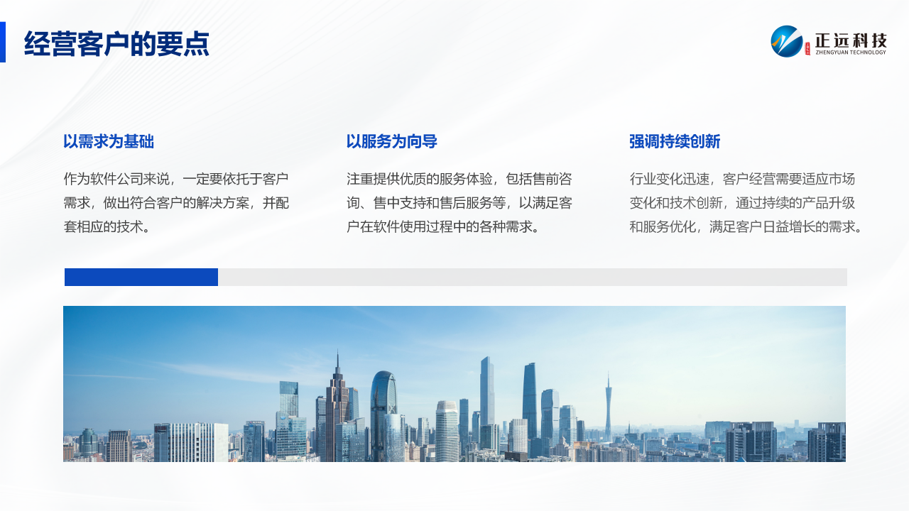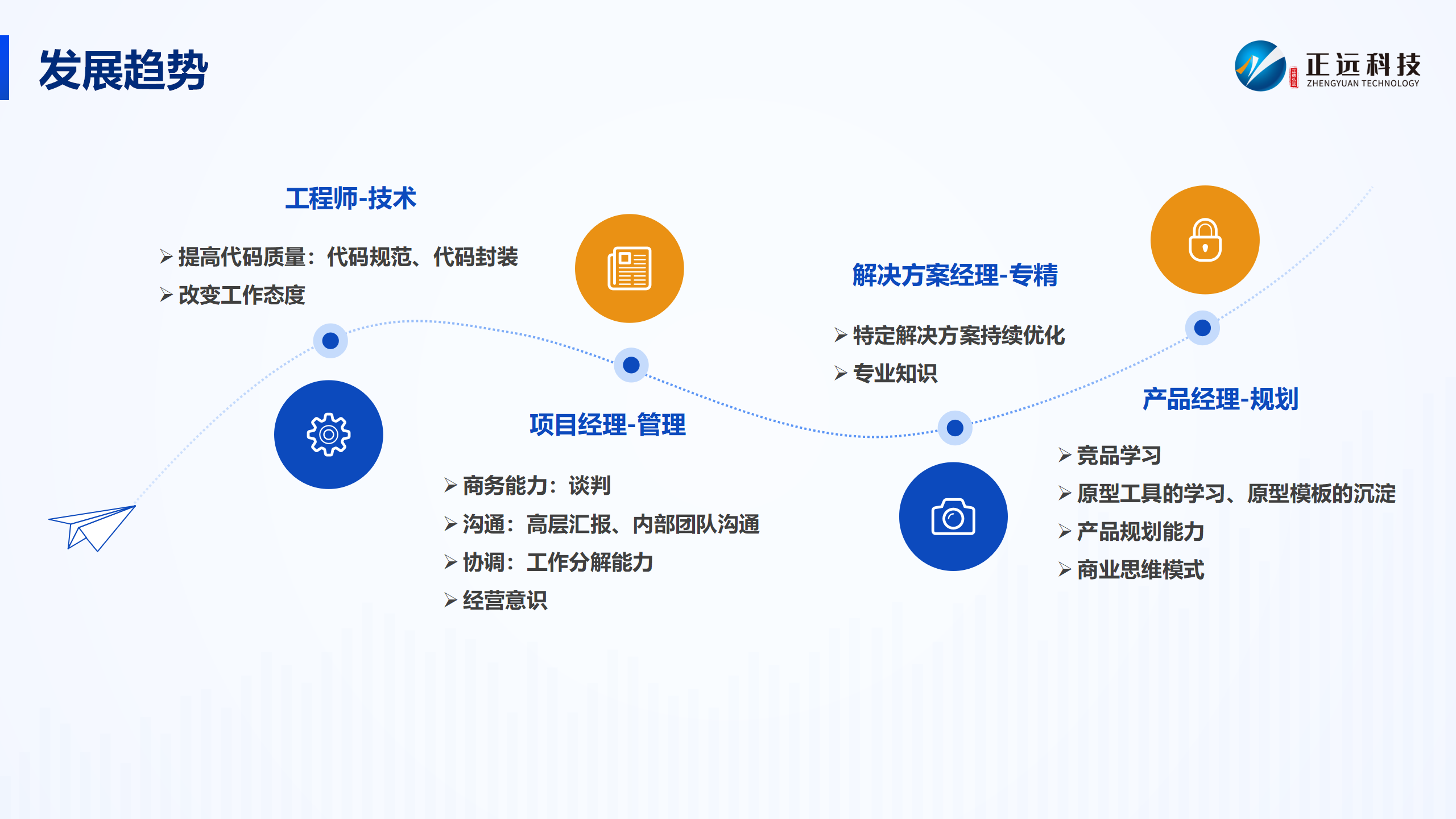 展望未來(lái),正遠(yuǎn)科技始將終堅(jiān)持以客戶為中心,不斷提升服務(wù)質(zhì)量,滿足客戶需求;繼續(xù)加強(qiáng)團(tuán)隊(duì)能力建設(shè),提供更多的培訓(xùn)和學(xué)習(xí)機(jī)會(huì),推動(dòng)團(tuán)隊(duì)整體能力的不斷提升;持續(xù)關(guān)注市場(chǎng)動(dòng)態(tài)和客戶需求,加大研發(fā)投入,創(chuàng)新服務(wù)模式,提升服務(wù)品質(zhì),為客戶創(chuàng)造更大的價(jià)值。