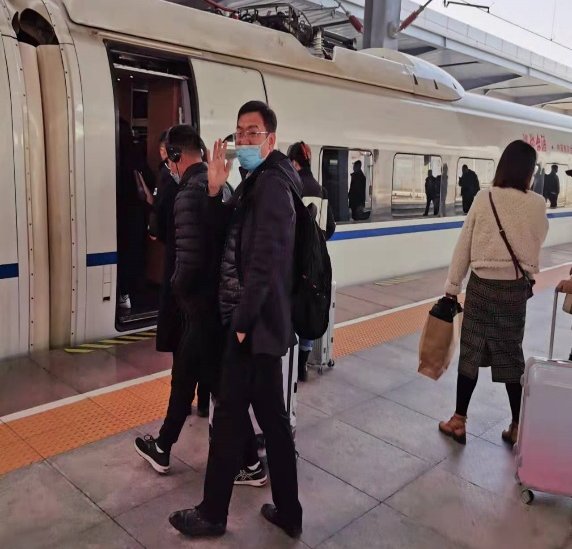 第二天還是工作日,為了不耽誤工作,趕最早一班車(chē)回濟(jì)南。剛進(jìn)冬天的濟(jì)南還是有點(diǎn)冷的,拖著疲憊的身軀下車(chē)時(shí)忽然發(fā)現(xiàn)了一個(gè)熟悉的身影,仔細(xì)一看居然是鎮(zhèn)哥。頓時(shí)滿身的疲憊一掃而空,只剩下驚喜。之前知道他周三在青島,周四在濱州,周五要去北京,我們兩個(gè)也有一周沒(méi)見(jiàn)了,沒(méi)想到以這種方式讓我們實(shí)現(xiàn)了每周一聚。同一車(chē)次,同一車(chē)廂,只不過(guò)我下車(chē)他上車(chē)。
